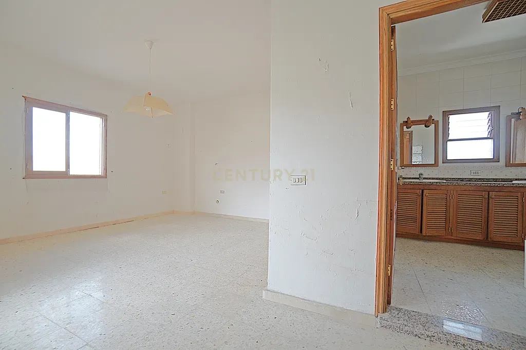 Se vende amplio piso independiente en la planta primera de una casa terrera, ideal para reformar a su gusto. La vivienda tiene una superficie de 173 m² y se distribuye en 5 habitaciones exteriores, tres de ellas con armarios empotrados, incluyendo una habitación principal con baño en suite y balcón privado. Además, cuenta con dos baños más, una cocina abierta, con despensa, que conecta con un salón espacioso y un cuarto de lavado.